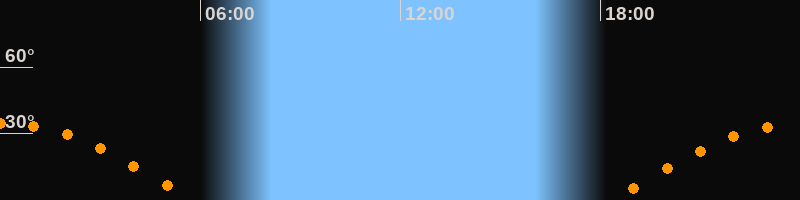 Höchster Stand (Kulmination)00:02 Uhr (h = 34,7°)