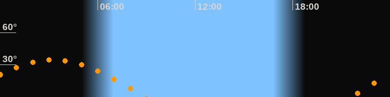 Höchster Stand (Kulmination)03:15 Uhr (h = 34,7°)