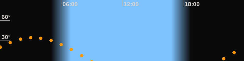 Höchster Stand (Kulmination)03:16 Uhr (h = 34,7°)