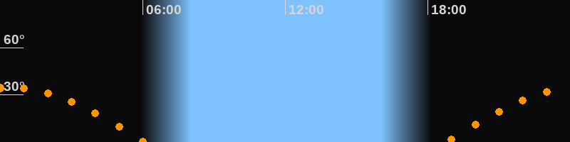 Höchster Stand (Kulmination)00:23 Uhr (h = 34,7°)