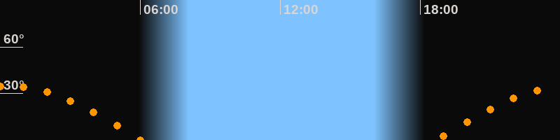 Höchster Stand (Kulmination)00:19 Uhr (h = 34,7°)