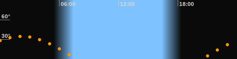 Höchster Stand (Kulmination)02:07 Uhr (h = 34,7°)