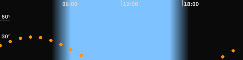 Höchster Stand (Kulmination)03:08 Uhr (h = 34,7°)