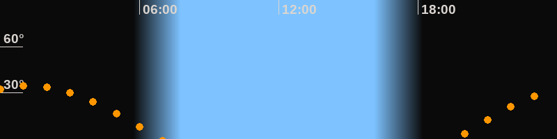 Höchster Stand (Kulmination)01:16 Uhr (h = 34,7°)