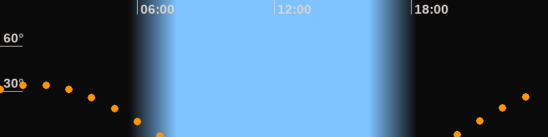 Höchster Stand (Kulmination)01:30 Uhr (h = 34,7°)