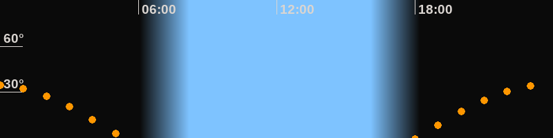 Höchster Stand (Kulmination)23:39 Uhr (h = 34,7°)