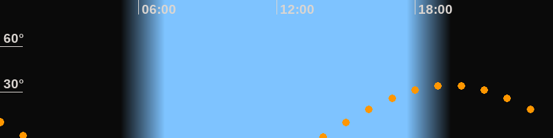Höchster Stand (Kulmination)19:30 Uhr (h = 34,7°)