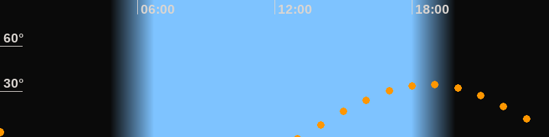 Höchster Stand (Kulmination)18:43 Uhr (h = 34,7°)