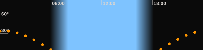 Höchster Stand (Kulmination)00:24 Uhr (h = 34,7°)