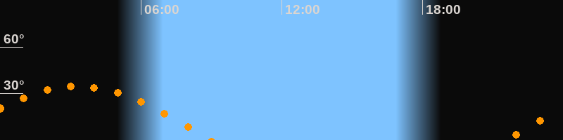 Höchster Stand (Kulmination)03:17 Uhr (h = 34,7°)