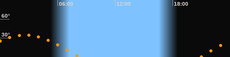 Höchster Stand (Kulmination)02:36 Uhr (h = 34,7°)