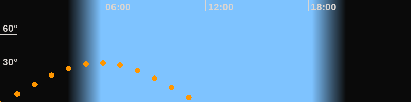 Höchster Stand (Kulmination)05:50 Uhr (h = 34,7°)