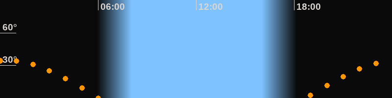 Höchster Stand (Kulmination)00:20 Uhr (h = 34,7°)