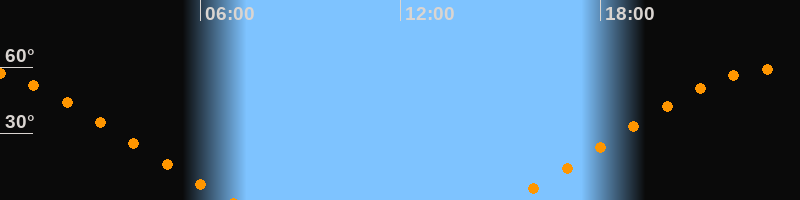 Höchster Stand (Kulmination)23:04 Uhr (h = 59°)