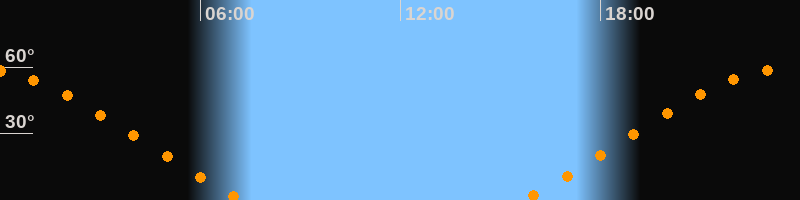 Höchster Stand (Kulmination)23:25 Uhr (h = 59°)