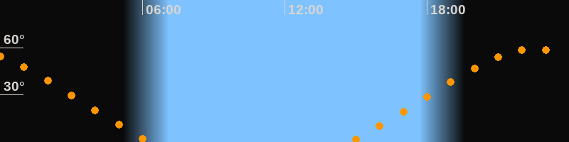 Höchster Stand (Kulmination)22:30 Uhr (h = 59°)