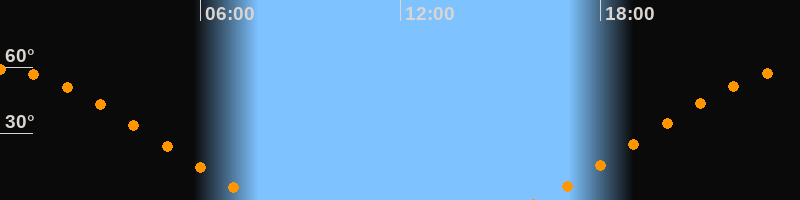 Höchster Stand (Kulmination)23:56 Uhr (h = 59°)