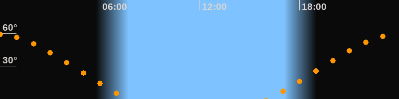 Höchster Stand (Kulmination)23:52 Uhr (h = 59°)