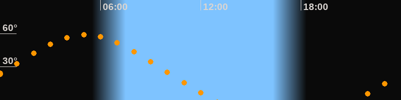 Höchster Stand (Kulmination)05:05 Uhr (h = 59°)