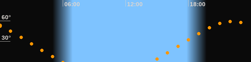 Höchster Stand (Kulmination)22:09 Uhr (h = 59°)