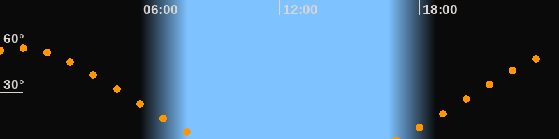 Höchster Stand (Kulmination)00:47 Uhr (h = 59°)