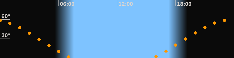 Höchster Stand (Kulmination)23:26 Uhr (h = 59°)