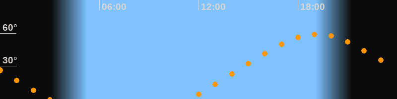Höchster Stand (Kulmination)19:09 Uhr (h = 59°)