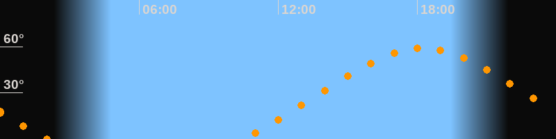 Höchster Stand (Kulmination)18:14 Uhr (h = 59°)