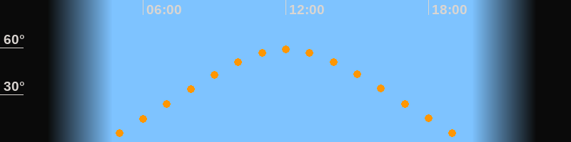 Höchster Stand (Kulmination)12:00 Uhr (h = 59°)