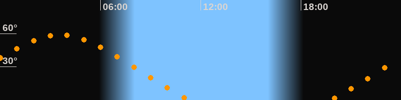 Höchster Stand (Kulmination)03:34 Uhr (h = 59°)