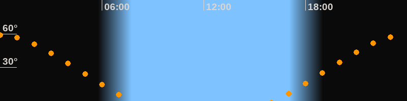 Höchster Stand (Kulmination)23:54 Uhr (h = 59°)