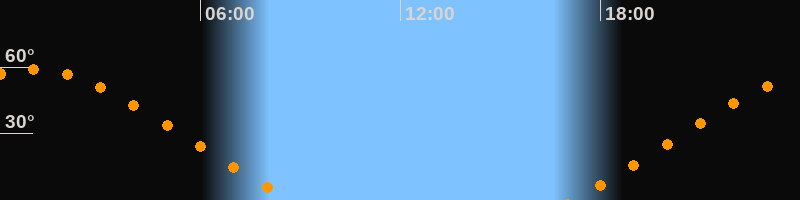 Höchster Stand (Kulmination)00:55 Uhr (h = 59°)