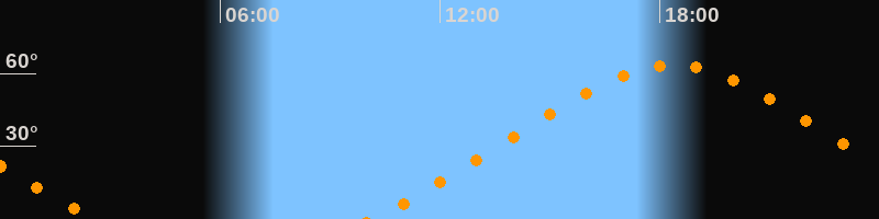 Höchster Stand (Kulmination)18:20 Uhr (h = 63,4°)