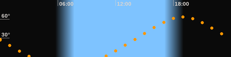 Höchster Stand (Kulmination)18:57 Uhr (h = 63,4°)