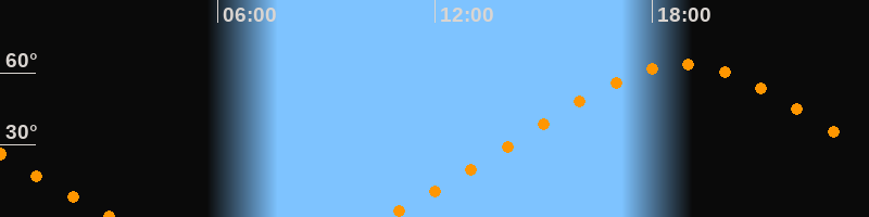 Höchster Stand (Kulmination)18:49 Uhr (h = 63,4°)