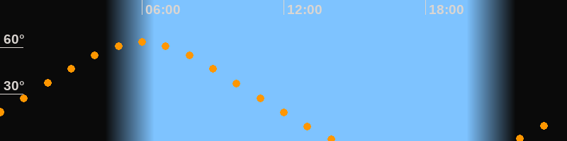 Höchster Stand (Kulmination)05:59 Uhr (h = 63,4°)