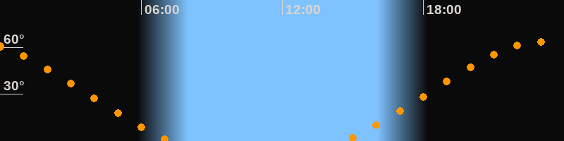 Aufgang14:38 Uhr im Nordosten (αAz = 48,9°)
