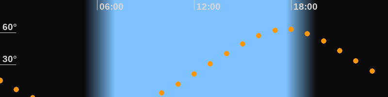 Höchster Stand (Kulmination)17:39 Uhr (h = 63,4°)