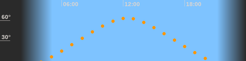 Höchster Stand (Kulmination)12:22 Uhr (h = 63,4°)