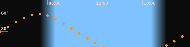 Höchster Stand (Kulmination)04:50 Uhr (h = 63,4°)