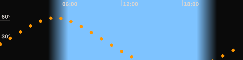 Höchster Stand (Kulmination)05:26 Uhr (h = 63,4°)