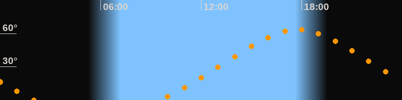 Höchster Stand (Kulmination)17:46 Uhr (h = 63,4°)