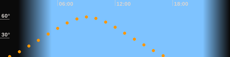 Höchster Stand (Kulmination)09:05 Uhr (h = 63,4°)