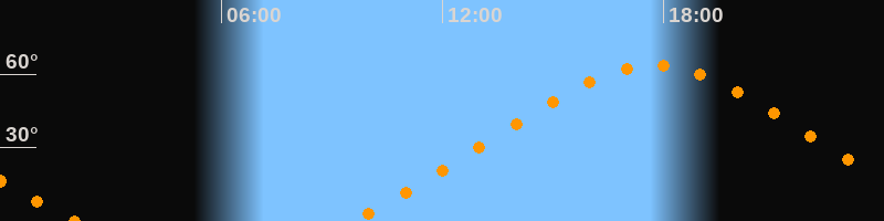 Höchster Stand (Kulmination)17:45 Uhr (h = 63,4°)