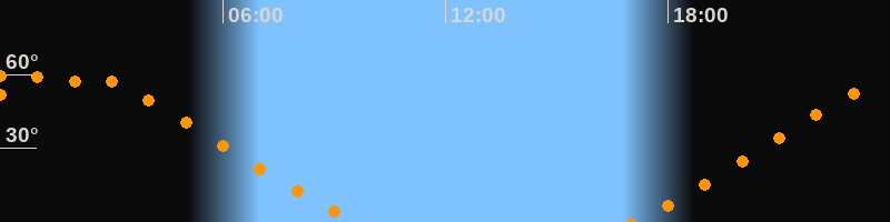 Höchster Stand (Kulmination)02:22 Uhr (h = 63,4°)
