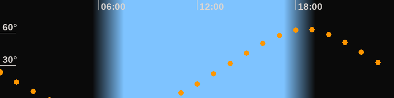Höchster Stand (Kulmination)18:33 Uhr (h = 63,4°)