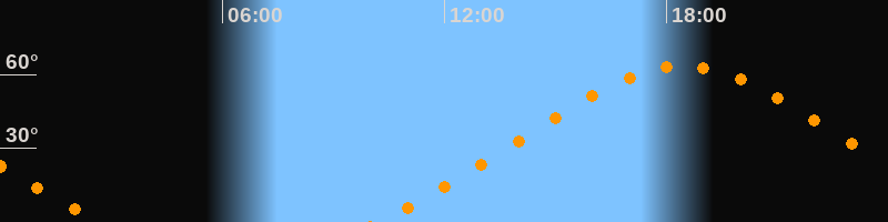 Höchster Stand (Kulmination)18:26 Uhr (h = 63,4°)