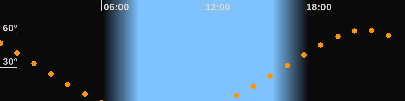 Höchster Stand (Kulmination)21:34 Uhr (h = 63,4°)