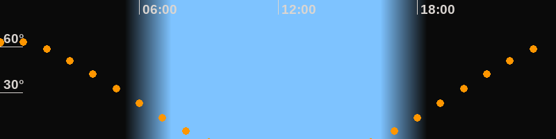 Höchster Stand (Kulmination)00:28 Uhr (h = 63,4°)
