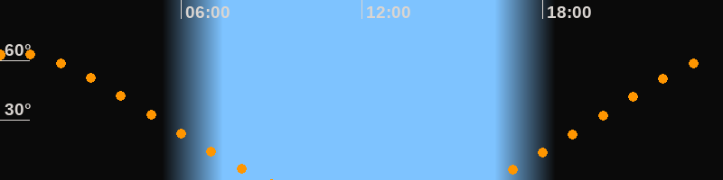 Höchster Stand (Kulmination)00:29 Uhr (h = 63,4°)